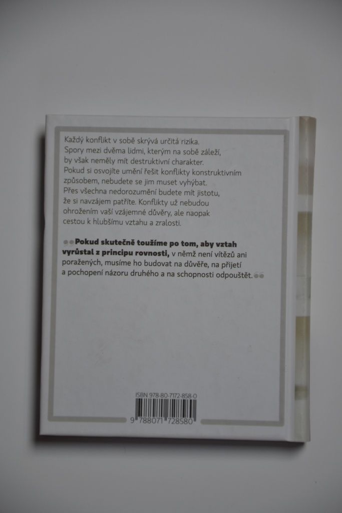 Každý konflikt v sobě skrývá určitá rizika. Spory mezi dvěma lidmi, kterým na sobě záleží, by však neměly mít destruktivní charakter. Pokud si osvojíte umění řešit konflikty konstruktivním způsobem, nebudete se jim muset vyhýbat. Přes všechna nedorozumění budete mít jistotu, že si navzájem patříte. Konflikty už nebudou ohrožením vaší vzájemné důvěry, ale naopak cestou k hlubšímu vztahu a zralosti.