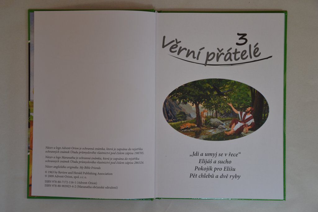 Celoilustrované biblické příběhy pro děti a mládež s názvem Věrní přátelé 3. Ilustrace jsou velmi kvalitně zpracovány. Třetí díl obsahuje následující příběhy: Jdi a umyj se v řece, Eliáš a sucho, Pokojík pro Elíšu, Pět chlebů a dvě ryby