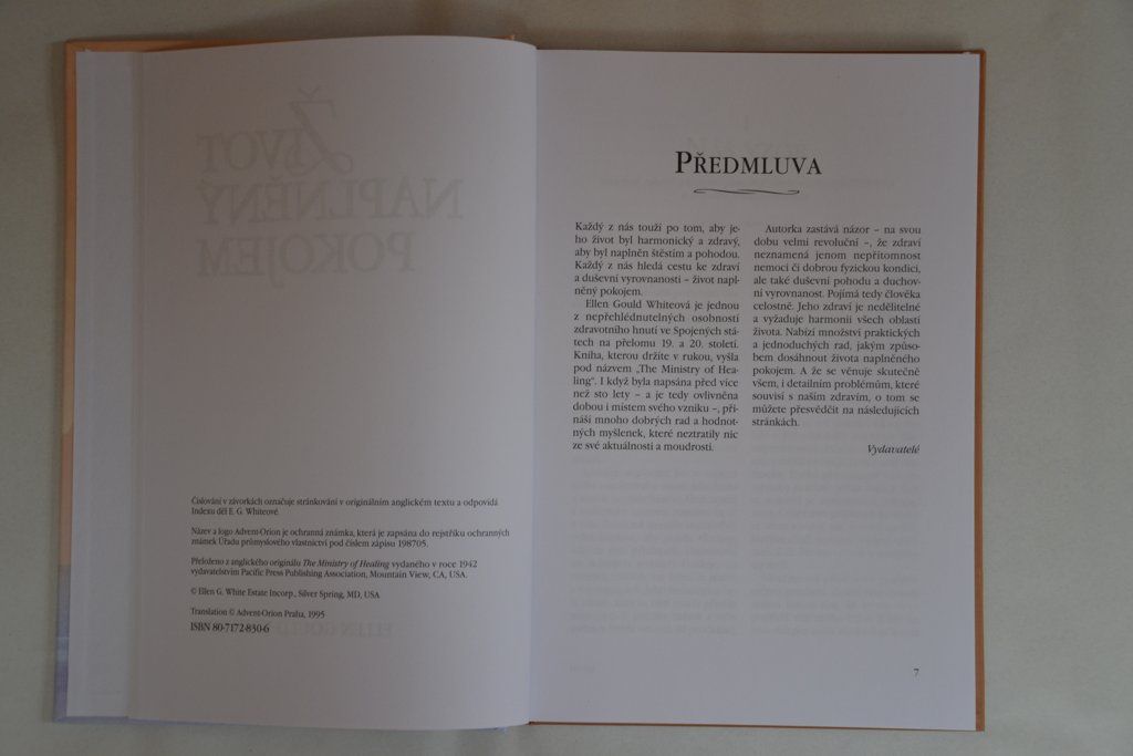 Každý z nás touží po tom, aby jeho život byl harmonický a zdravý, aby byl naplněn štěstím a pohodou. Každý z nás hledá cestu ke zdraví a duševní vyrovnanosti - život naplněný pokojem. Ellen Gould Whiteová je jednou z nepřehlednutelných osobností zdravotního hnutí ve Spojených státech na přelomu 19. a 20. století. Kniha Život naplněný pokojem vyšla pod názvem "The Ministry of Healing". I když byla napsána před více než sto lety - a je tedy ovlivněna dobou a místem svého vzniku -, přináší mnoho dobrých rad a hodnotných myšlenek, které neztratily nic ze své aktuálnosti a moudrosti.