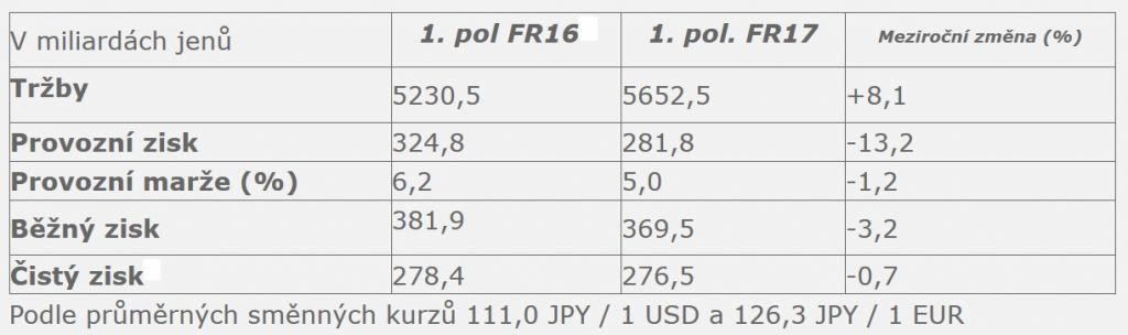 Nissan oznámil výsledky za první polovinu fiskálního roku 2017
