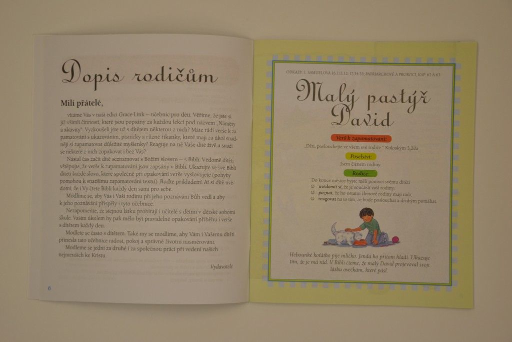 Učebnice Zrnka 6 je určena pro děti od 0 do 2 let a pro jejich rodiče. V této učebnici najdete pouze tři lekce - vždy jednu na celý měsíc. Proč? Abychom mohli dát svým dětem větší příležitost skutečně se naučit základní myšlenky, a to opěteovným zdůrazňováním. Dáváme také více příležitostí k opakování jednotlivých prvků programu, jakými jsou například písničky, a hry s prsty.